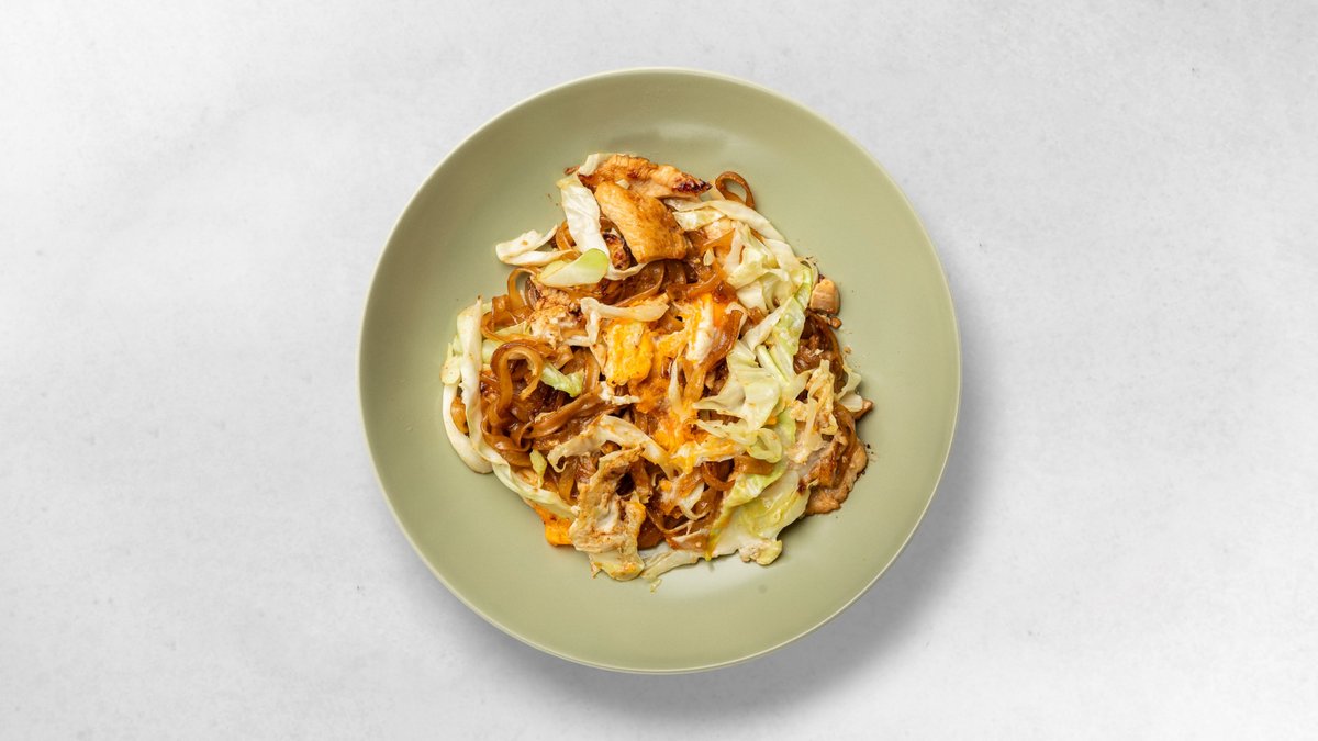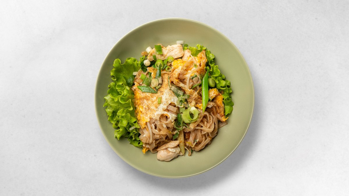 Rice noodle, chicken, egg, bean sprouts, lettuce