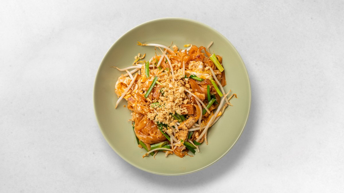 Rice noodle, Pad Thai sauce, egg, bean sprouts, tofu, Thai chives, peanuts