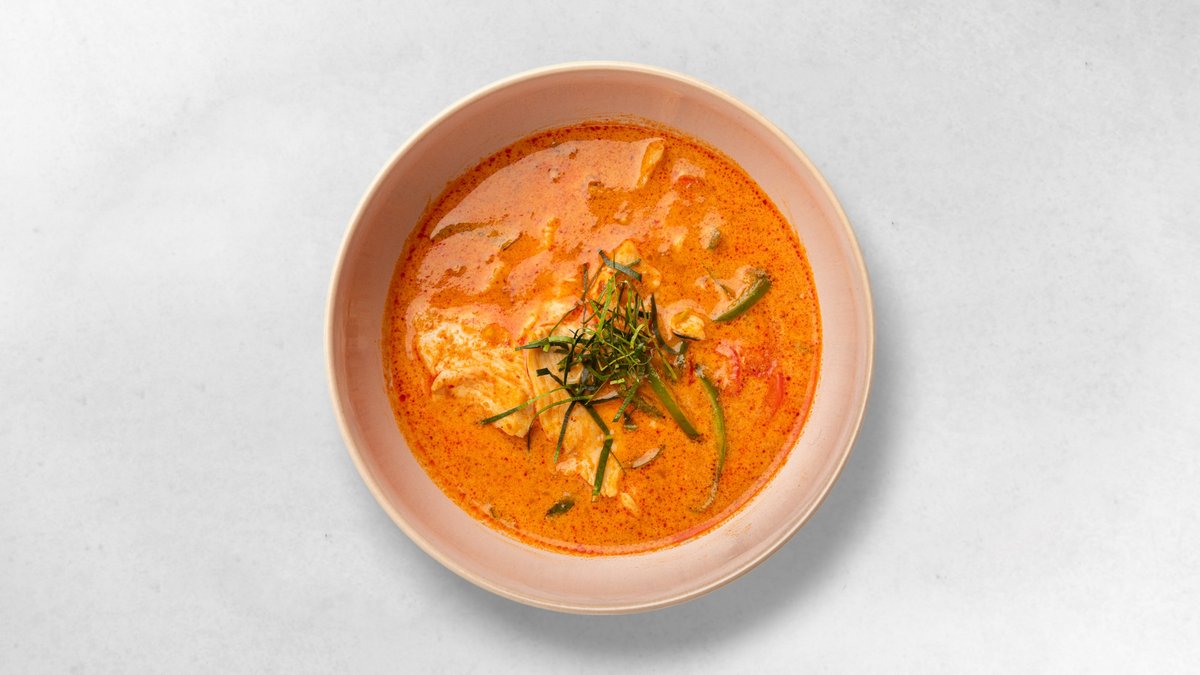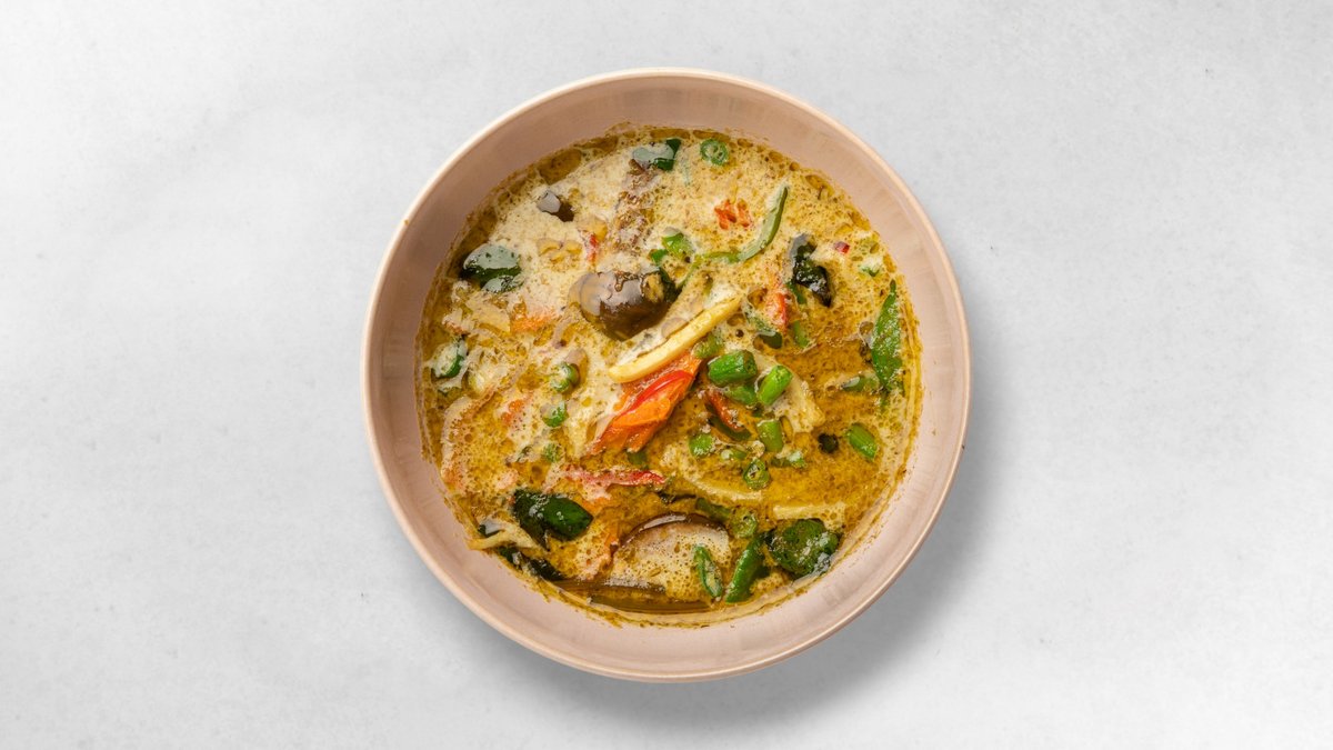 Red Thai curry, coconut milk, eggplant, Thai basil