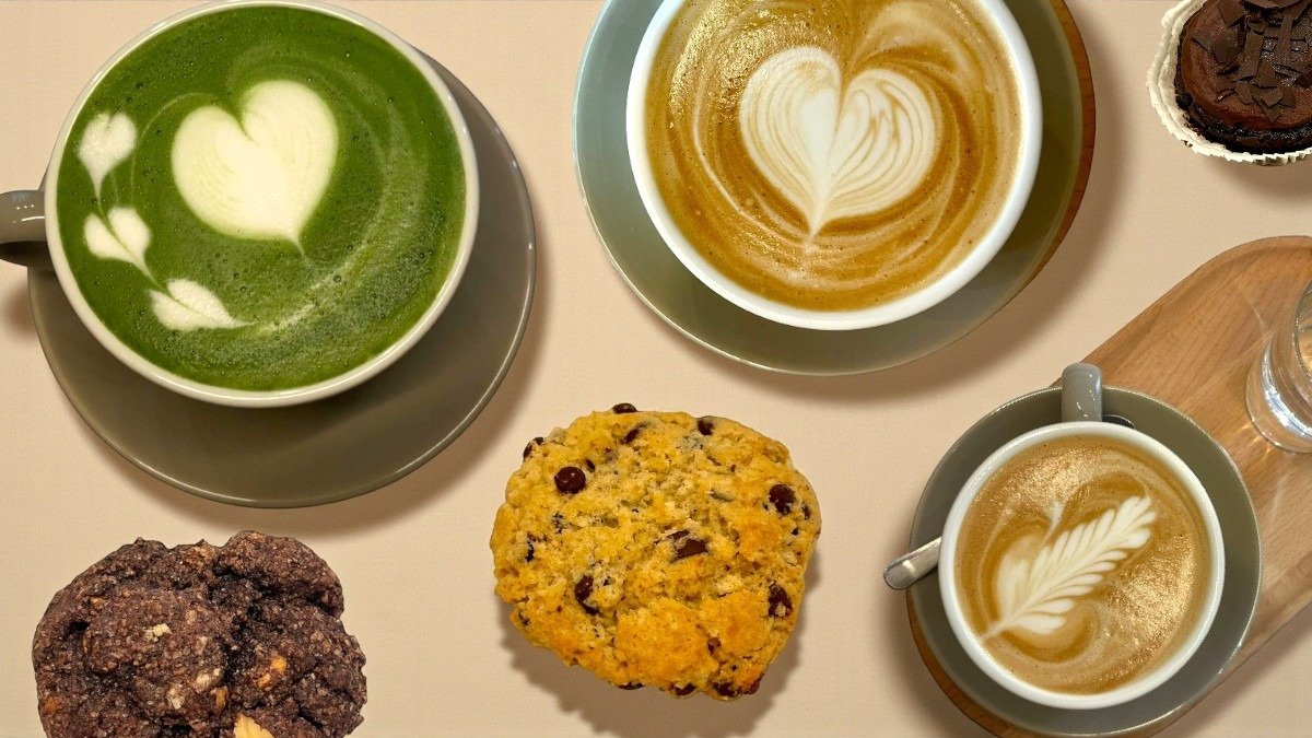 Specialty coffee and delicious café treats, freshly prepared for delivery.