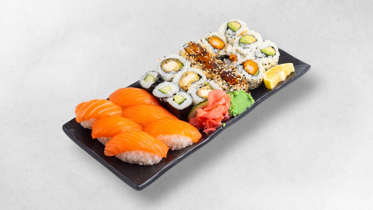 8x Sake Avocado Maki 3x Lachs Maki 2x Lachs Sushi 3x Garnelen Sushi 2x Thunfisch Sushi