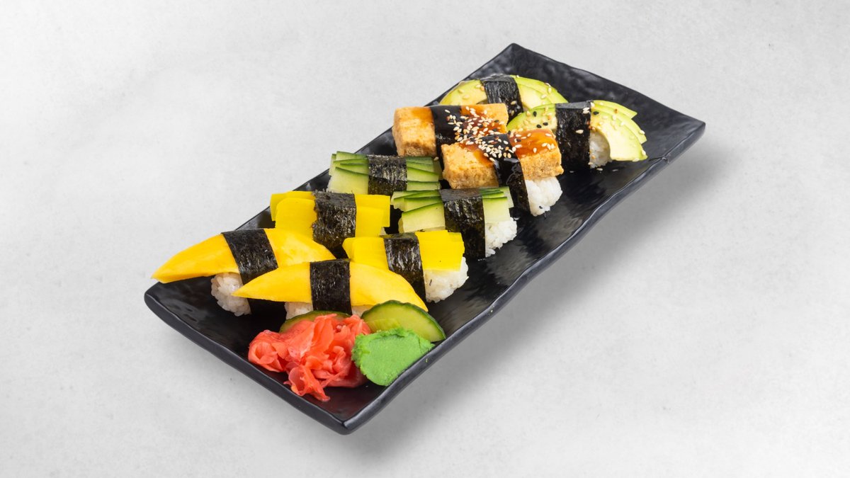 6x Avocado Maki 6x Mango Maki 6x Süßkartoffeln Maki 3x Gurken Maki