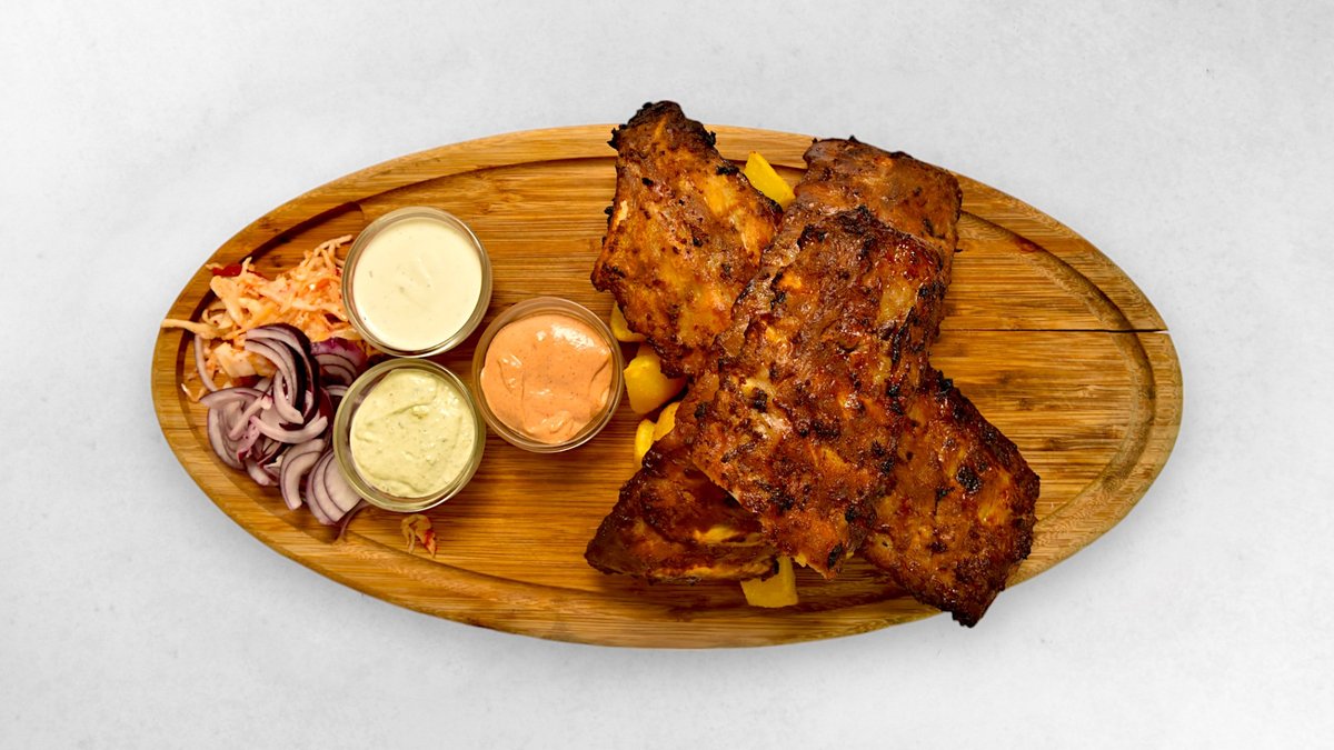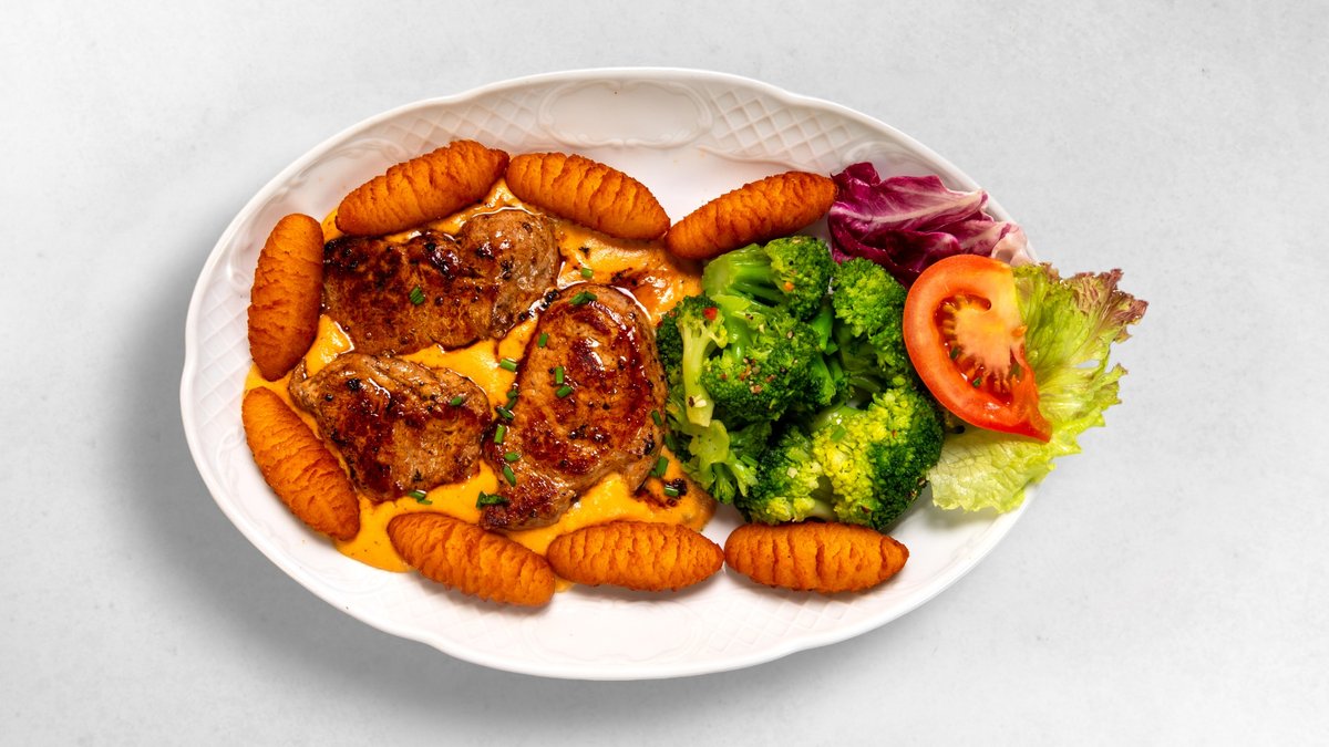 Alle Lieblingsschmakerl werden mit Cocktail-Knoblauchsoße und Braterdäpflen zubereitet
