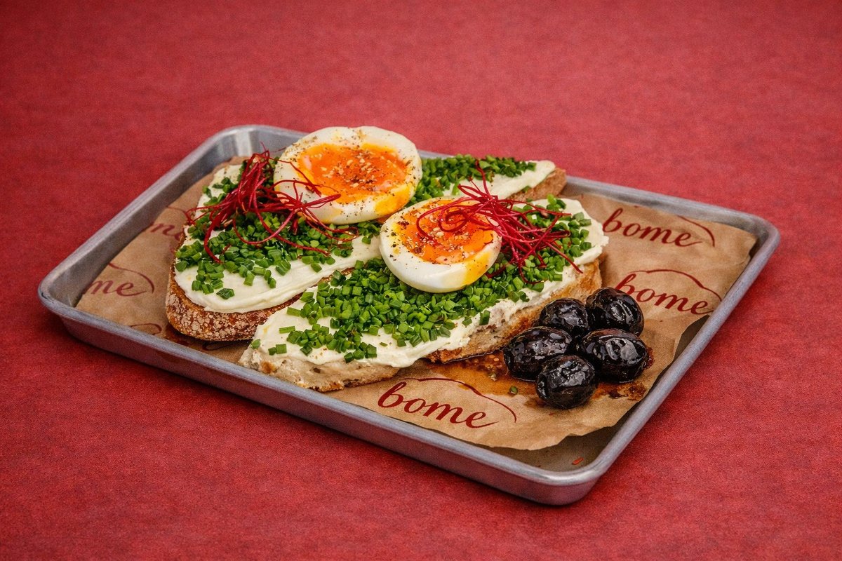 Knuspriges Sauerteigbrot von Joseph Brot trifft auf samtigen Bome Cream Cheese, pikante Sucuk, aromatische Oliven und gekochtes Ei. Ein moderner Brunch-Klassiker mit orientalischem Twist.