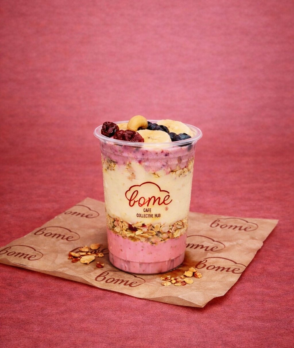 Knuspriges Walnuss-Granola trifft auf cremigen Vanille- und fruchtigen Heidelbeerjoghurt – kombiniert mit einer bunten Auswahl an frischem und getrocknetem Obst. Eine ausgewogene Bowl voller Geschmack, Energie und natürlicher Süße – perfekt für einen genussvollen Start in den Tag oder als gesunder Snack zwischendurch.