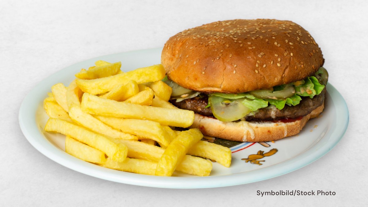 100% Rindfleisch, Tomaten, Blattsalat, Essiggurken, Cheddar Käse, Spiegelei, knuspriger Speck, rote Zwiebel
