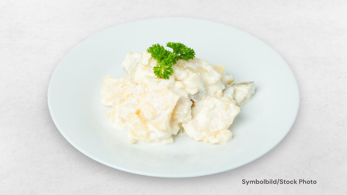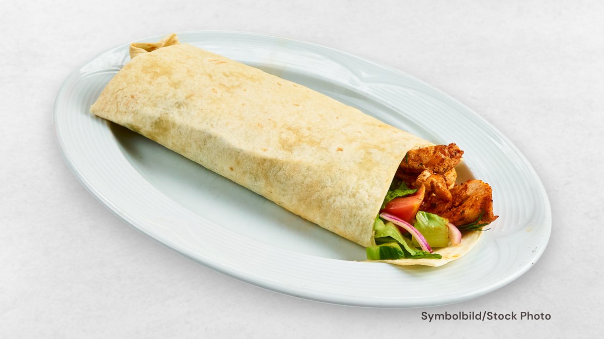 Würziges Hühnerfilet, Blattsalat, rote Zwiebel, Knoblauchsoße