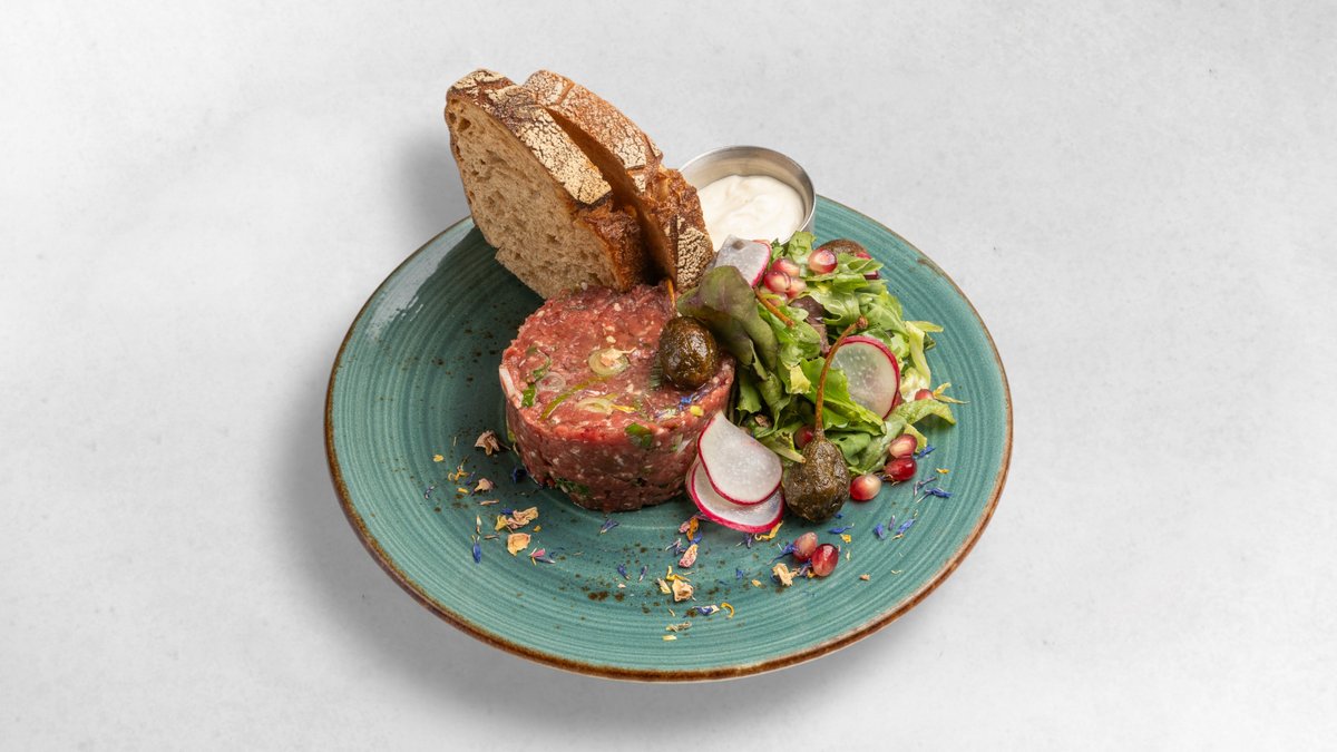 Limette, Jungzwiebel, frittierte Kapern, Cayennepfeffer, Zitronenaioli, getoastetes Bio Sauerteigbrot vom Joseph