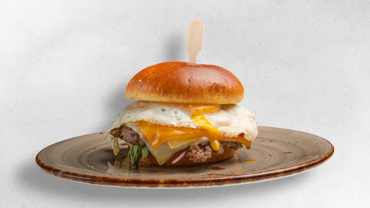 100% Waldviertler Weiderind, Mayonnaise, Pflücksalat, Gauda, Cheddar, Heumilchkäse, Bio Spiegelei, Röstzwiebel