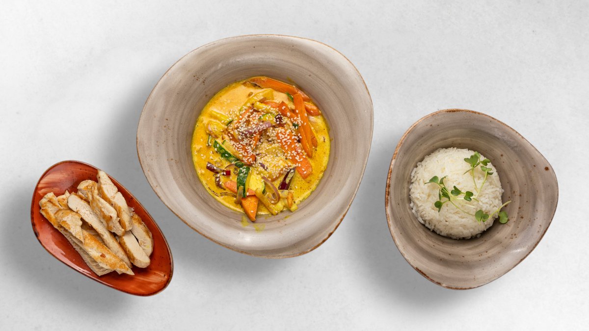 Rote Linsen, Karotte, Zucchini, roter Zwiebel, Reis