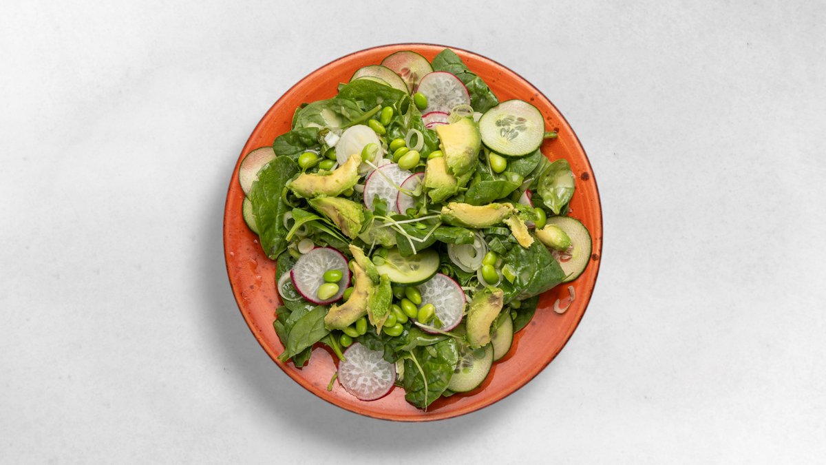 Gurke, Radieschen, Jungzwiebel, Edamame, Honig-Sesamdressing