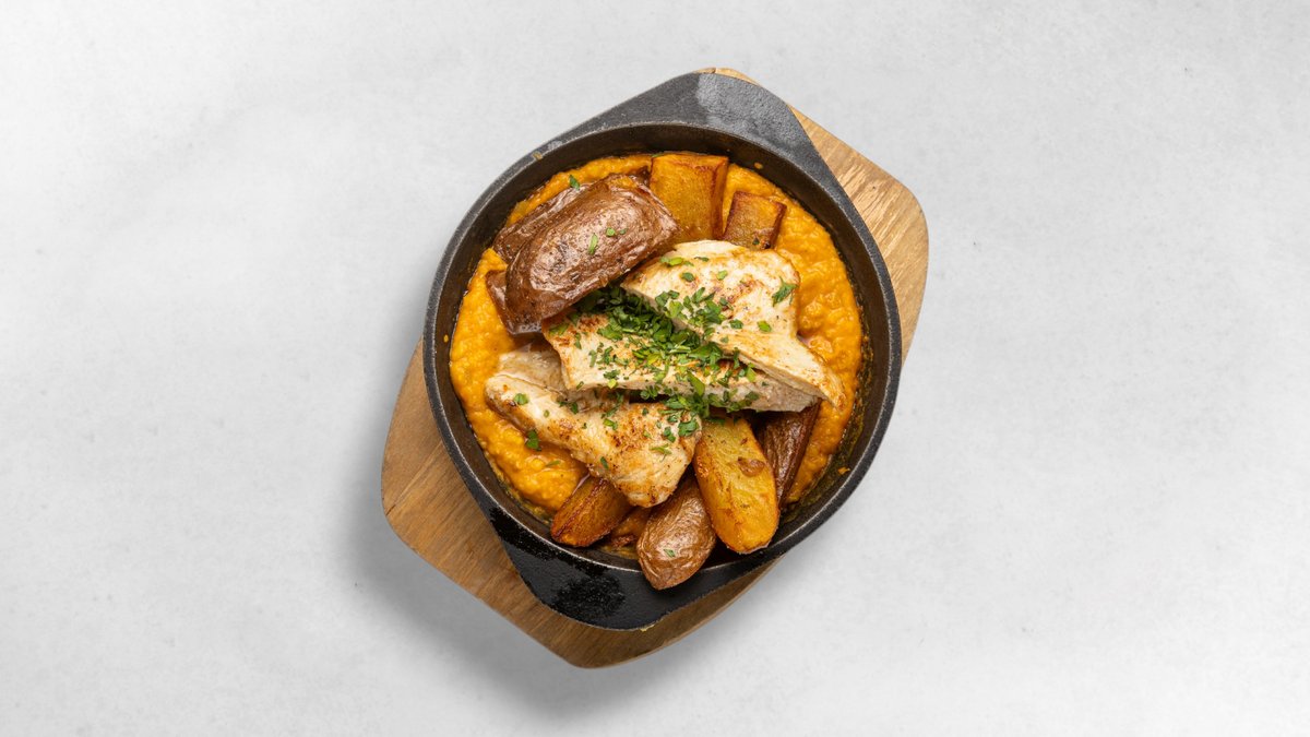Gegrillte Landhendlbrust auf Rote Linsen-Dal
