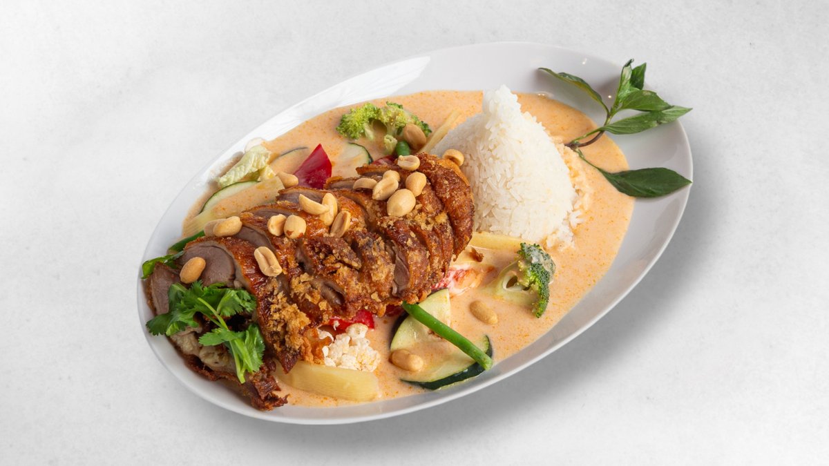 Knusprige Ente, Kokosmilch, frisches Saisongemüse