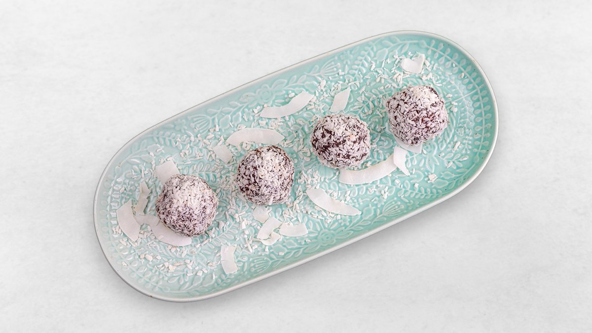 3 Stück Energiegeladene Bällchen mit Datteln, Mandeln & feinem Kakao. Natürlich hausgemacht und ohne Zuckerzusatz