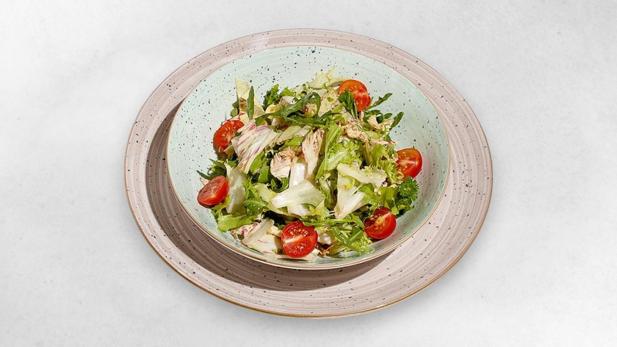 Mixed baby leaf salad, cherry tomatoes, homemade dressing