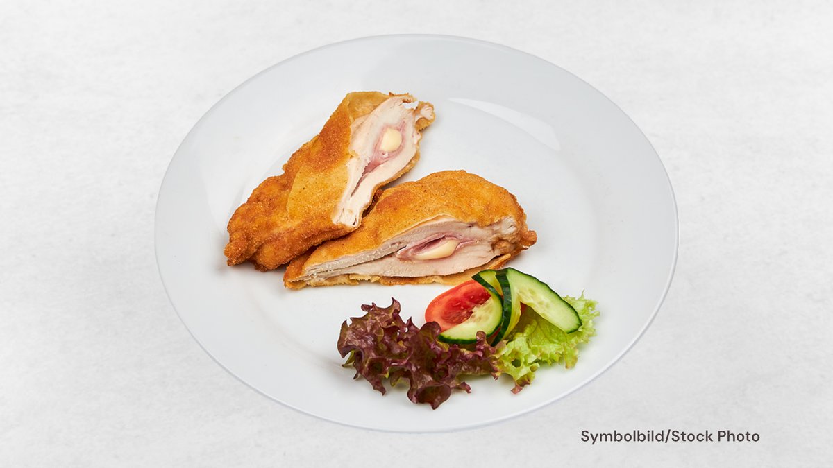 Plain Cordon Bleu filled with ham, cheese, garlic sauce, fried potatoes