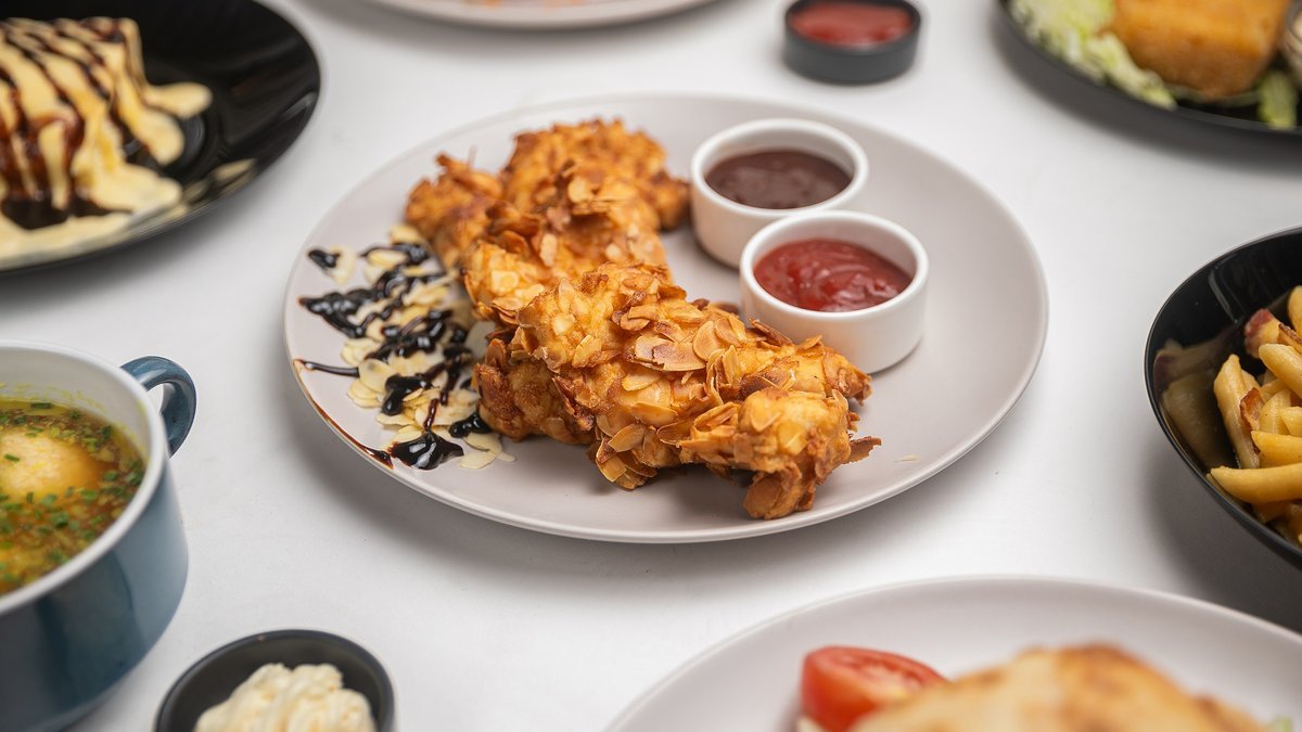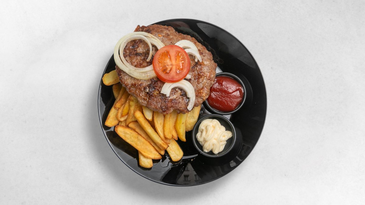 Alle Menüs werden in Brot zubereitet mit Pommes frites und Getränk 0,33l serviert