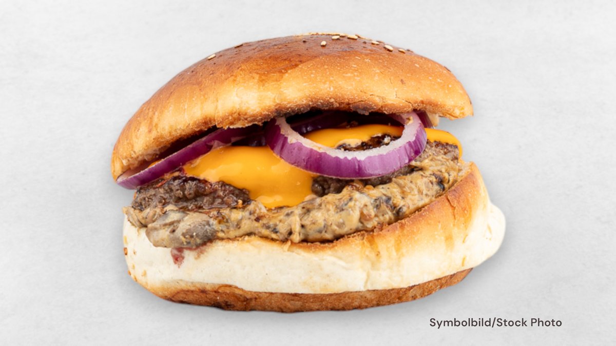 Rindfleisch, Rinderspeck, Salat, Tomate, Zwiebel, Gurke, Barbecuesoße
