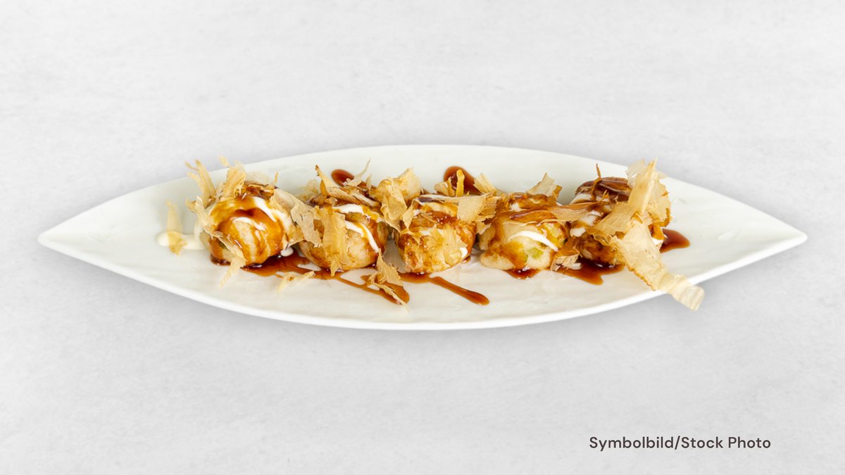 4 Stück Japanische Oktopusbällchen, Chili-Mayonnaise, Teriyaki-Soße