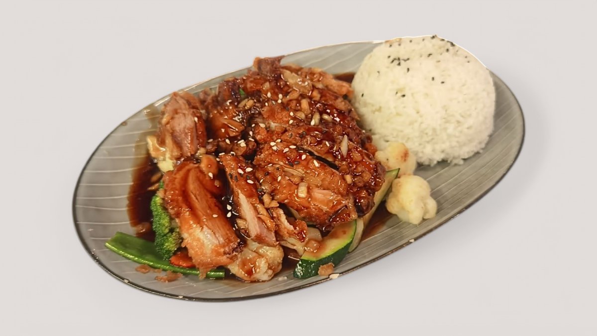 Kokos-Curry, frisches Gemüse in cremiger Kokosmilch, Reis, Zutat deiner Wahl