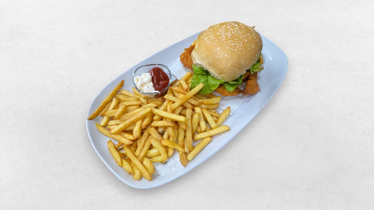 Salat, Zwiebeln, Tomaten, Essiggurken,Tartare-Soße