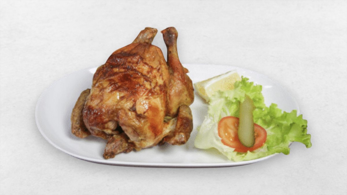 Frisches Brathähnchen, außen knusprig, innen saftig