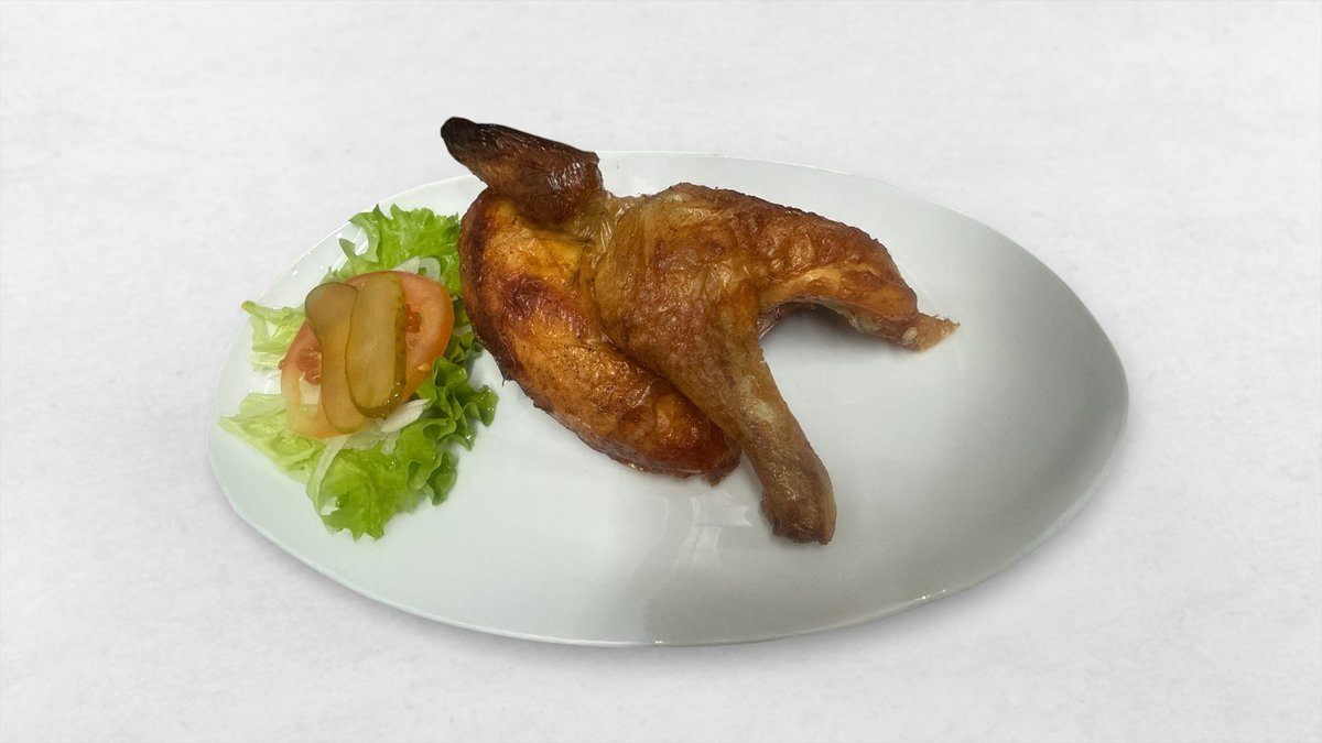 Gebackenes halbes Hähnchen, außen knusprig und innen saftig