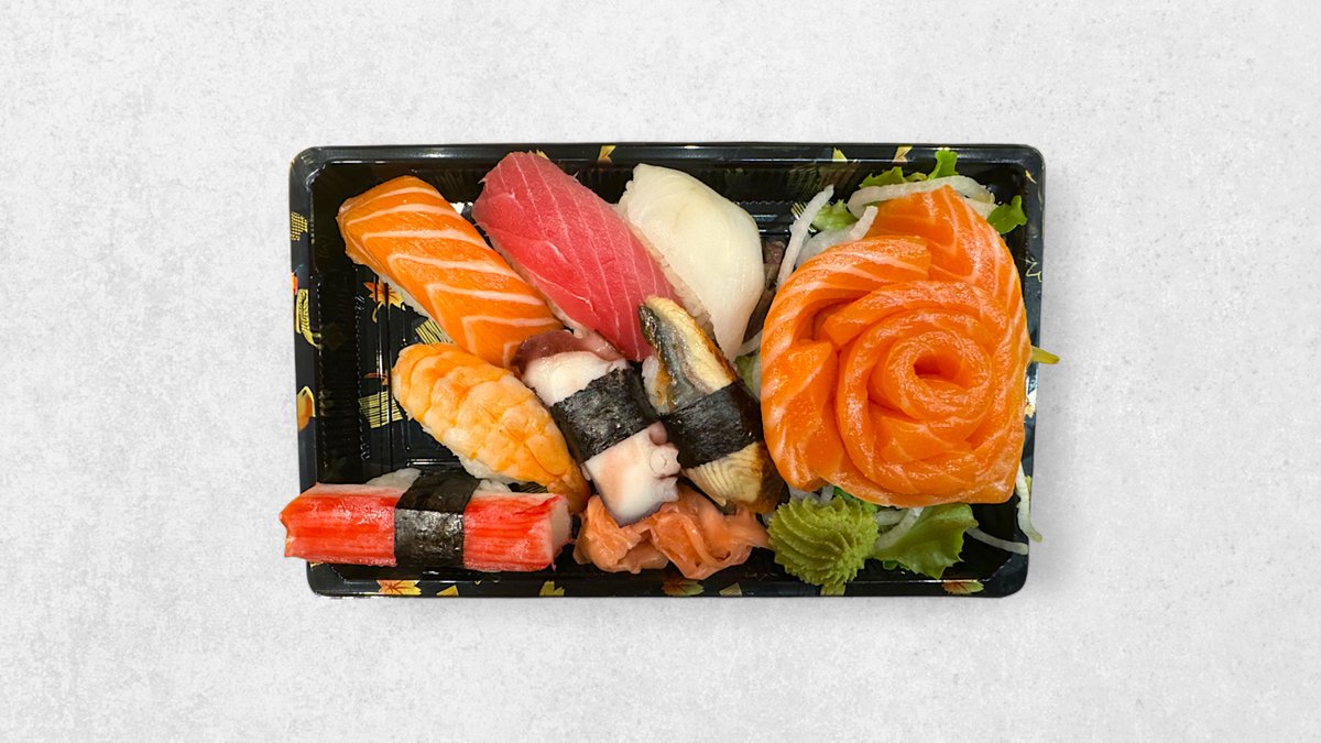 9x Sushi, 6x California Maki, 9x Sashimi, 1x Temaki