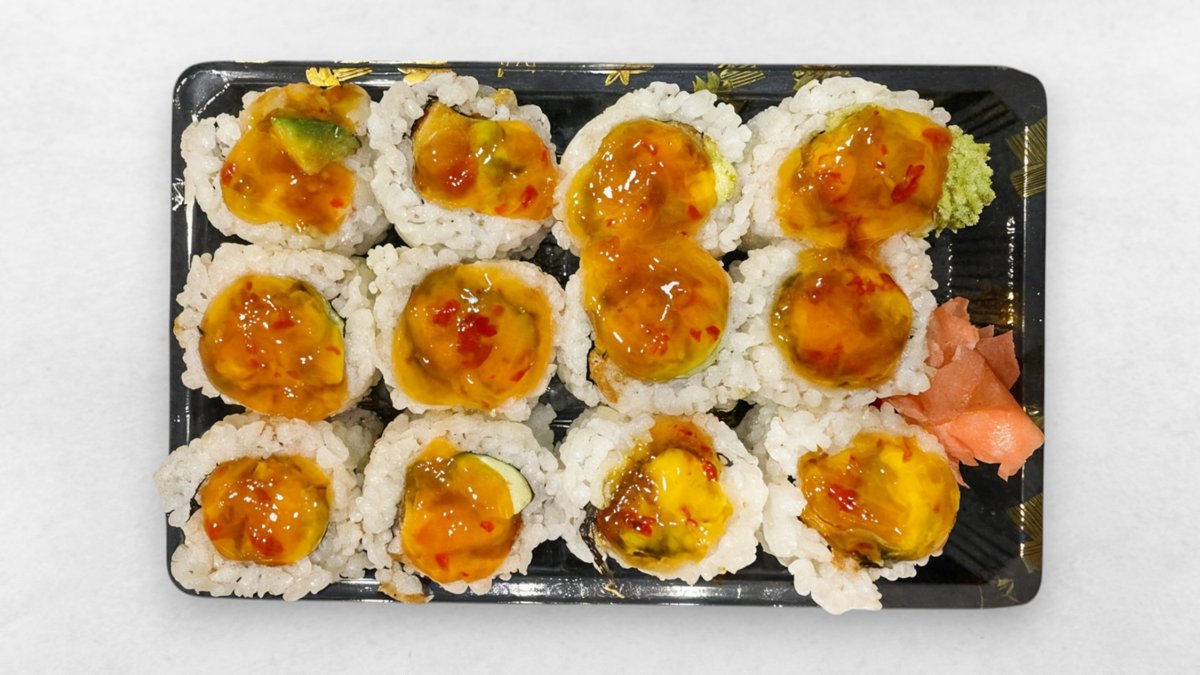 3x California Maki, 3x Lachs Maki, 1x Temaki, 2x Lachs-Sushi, 2x Thunfisch- Sushi, 2x Heilbutt-Sushi