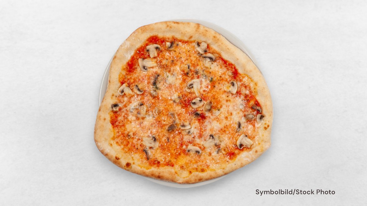 Tomatensauce, Mozzarella, Schafskäse, Gorgonzola und Oregano. Champignons
