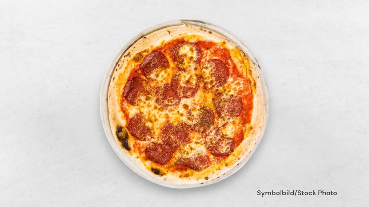 Tomatensauce, Mozzarella, Schinken, Mais, Speck, Pfefferoni und Oregano