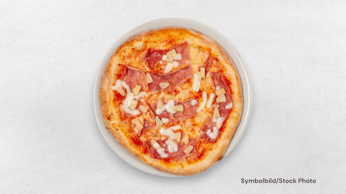 Tomatensauce, Mozzarella, Schinken, Ananas und Oregano