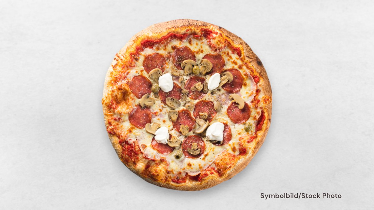 Tomatensauce, Mozzarella, Salami, Champignons und Oregano
