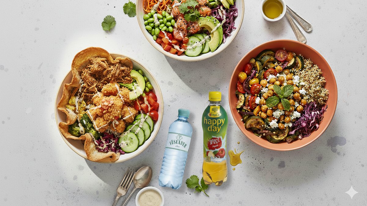 Lunch Deal – Bowl oder Salad + Getränk (14,90 €) „Mach Mittagspause richtig: Wähle eine unserer frischen Bowls oder einen knackigen Salad – dazu ein erfrischendes Getränk. Alles zusammen für nur 14,90 €. Gesund, schnell & lecker – genau richtig, wenn der Kopf brummt und du trotzdem Power für den Nachmittag brauchst.“