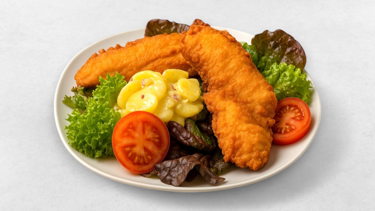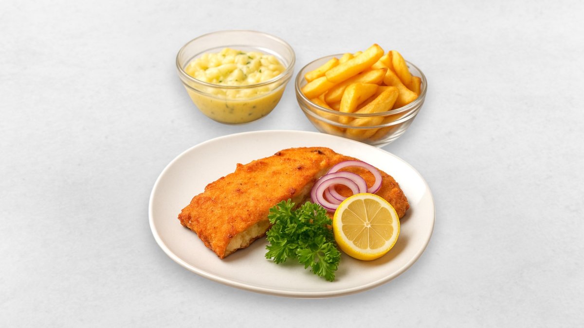 Herzhaftes Schnitzel nach Wiener Art, Käse, Schinken, Beilage nach Wahl