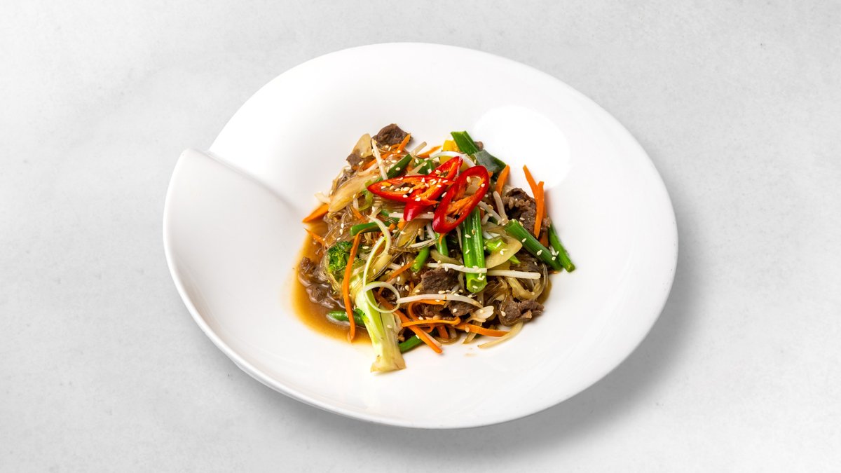 gebratene Glasnudeln, Rindfleisch, Gemüse