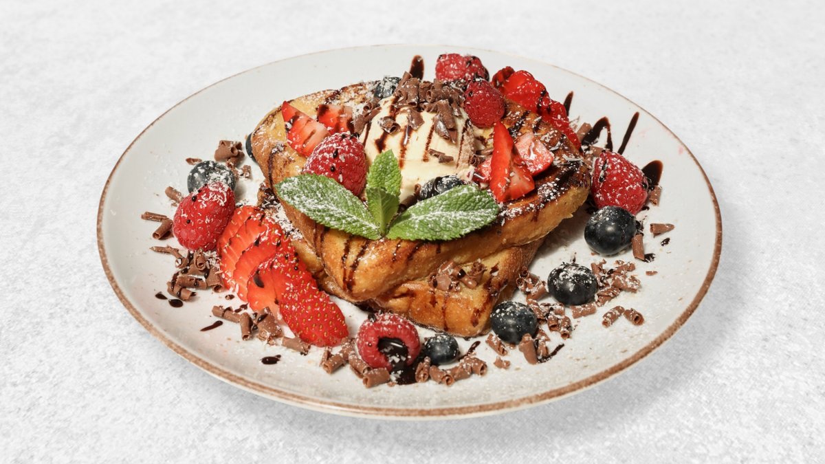 Erdbeeren, Himbeeren, Heidelbeeren, Vanilleeis, Zimt, Schokostreusel
