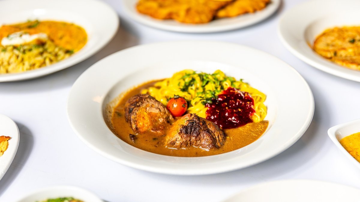 Hausgemachte Nudeln, Preiselbeeren, Wacholder-Rahmsoße