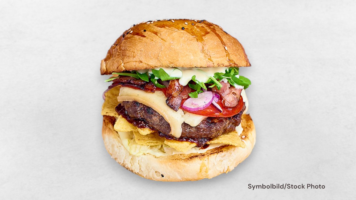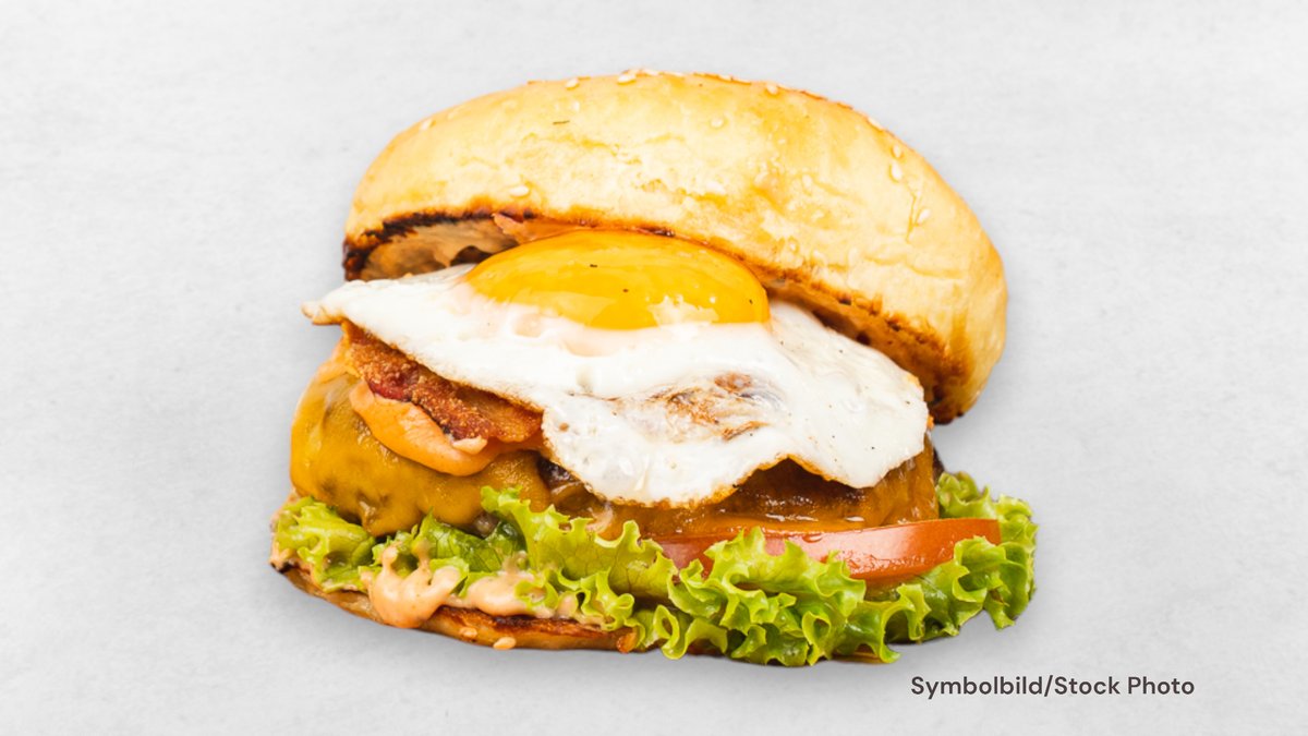 150g Beef-Patty, knuspriger Bacon, Röstzwiebeln, Spiegelei, Essiggurken, Spezial-Saucen, viel cremige Soße