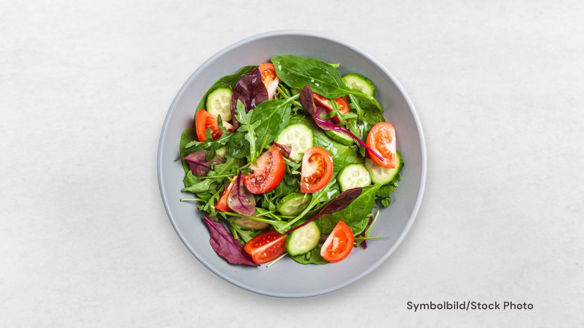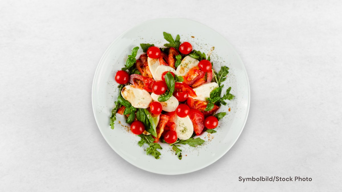 Salat, Rucola, rote Zwiebel, Tomaten, Oliven