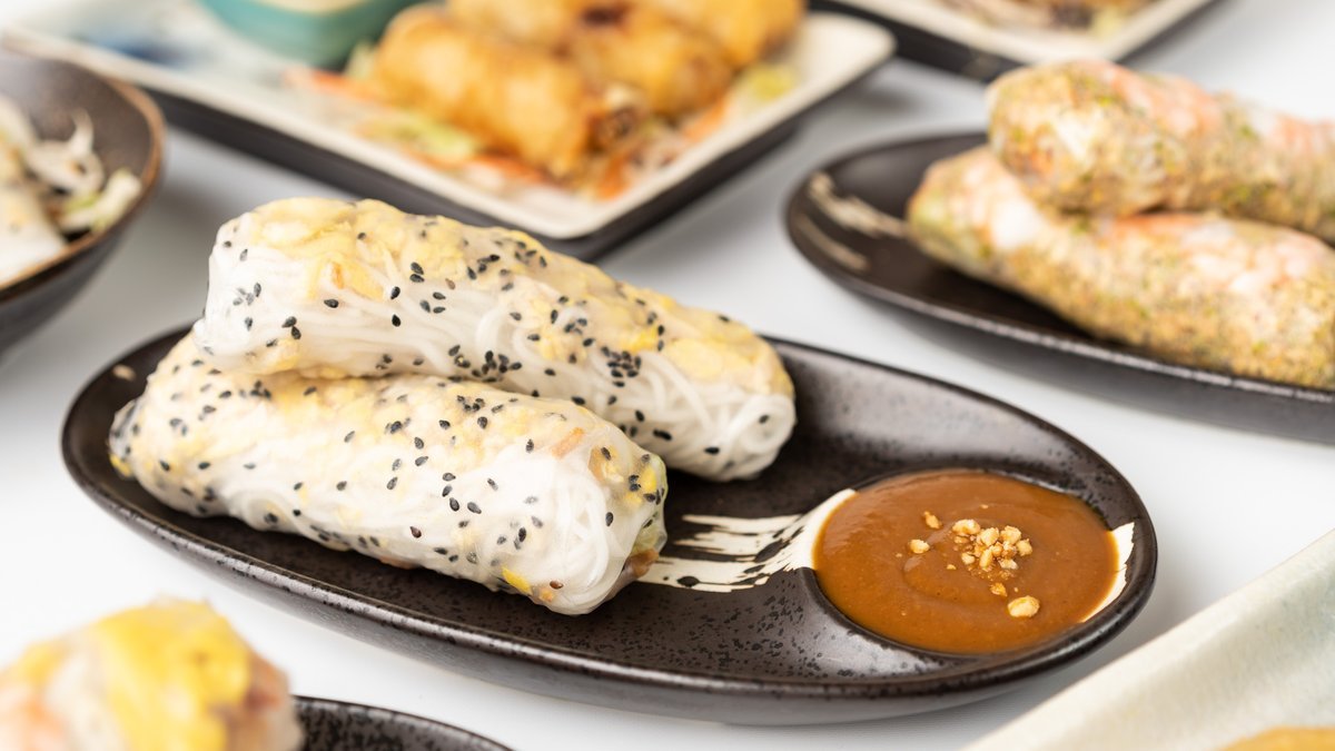 Alle Sommerrollen werden mit Reisnudeln, Sojasprossen, Karotten, Salat, Minze und gerösteten Zwiebeln zubereitet und jede Portion enthält 2 Stück