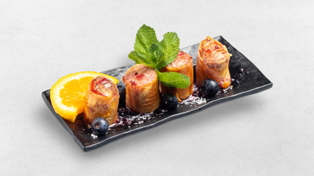 2 Stück Hausgemachte knusprige Rolle aus Wa-Tan Teig, Garnelen- & Schweinefleisch-Füllung
