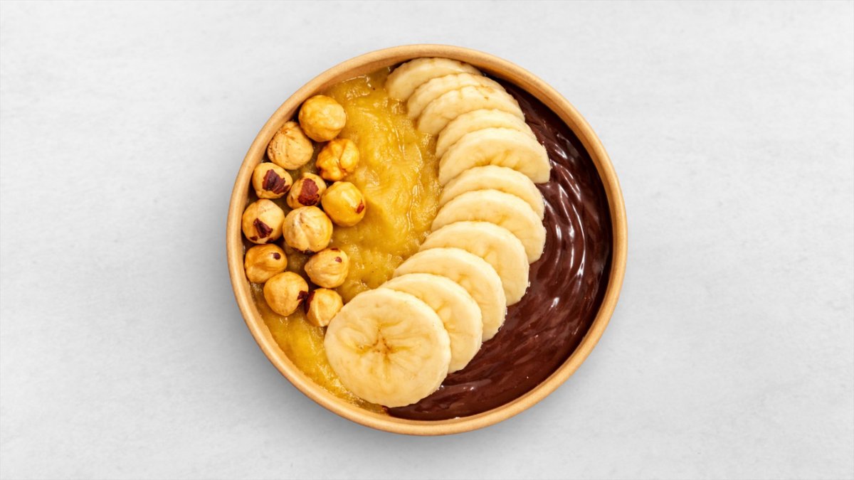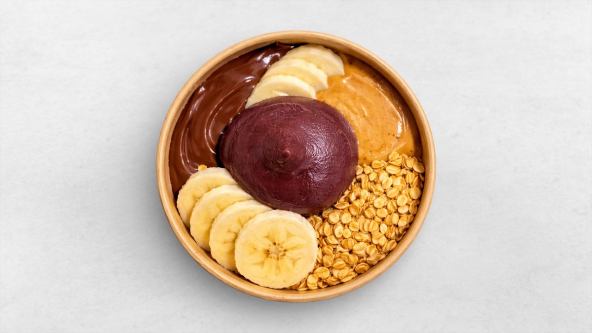 Signature Porrige: Açaí, Erdnussbutter, Schoko-Hazelnuss-Creme, Banane, Granola