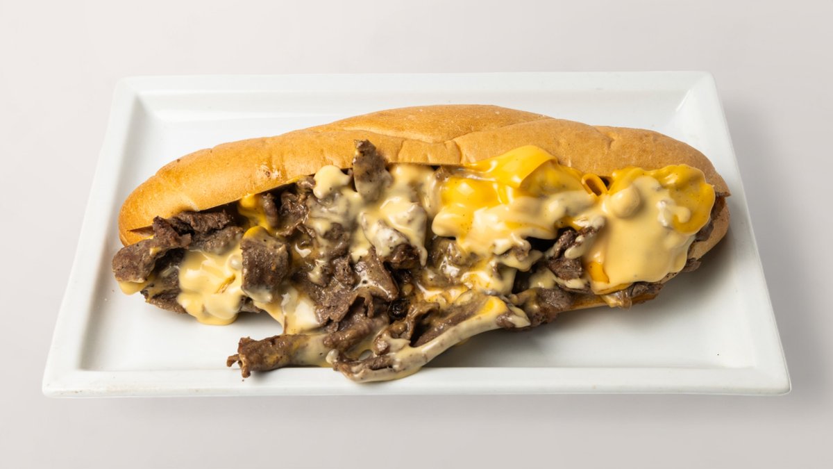 Große Portion Mac'n'Cheese, Philly Steakfleisch, Cheddarsoße