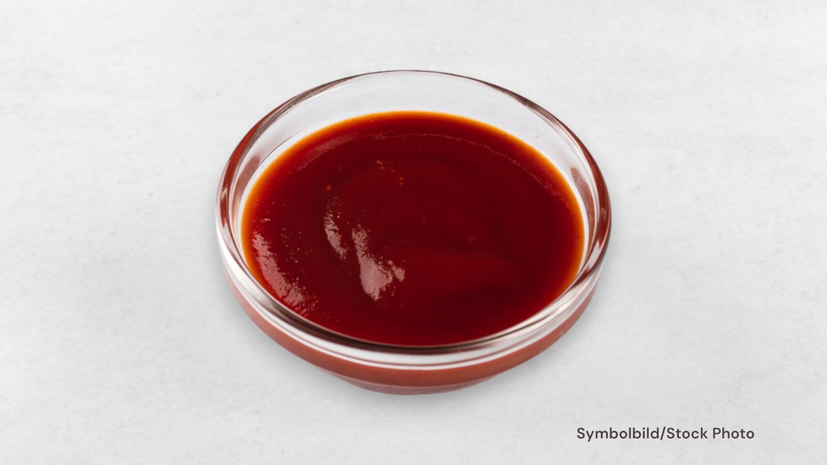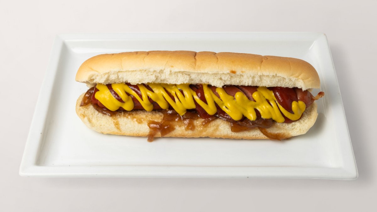100% Rindfleisch Wurst, Karamelisierte Zwiebel, Ketchup, Senf