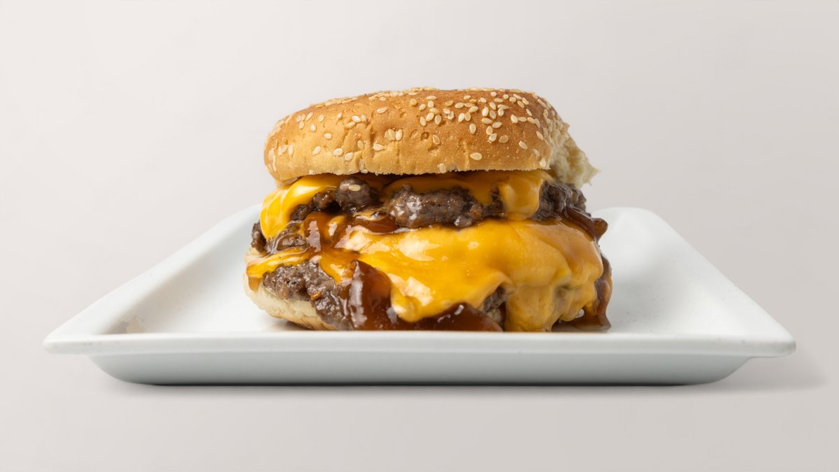3 Patties 210g Rinderhackfleisch, 6x Scheiben Cheddar, karmalisierte Zwiebel, Barbecuesoße, Sesame Bun