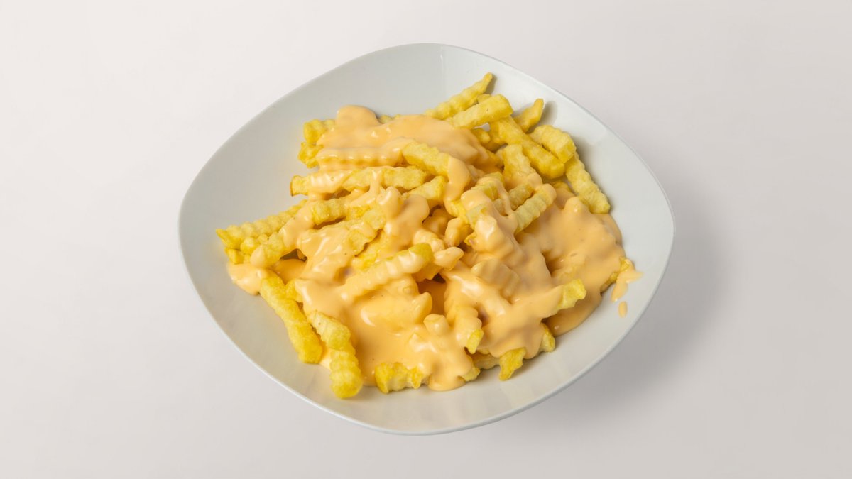 In Erdnussöl frittiert, Cheddar Cheese-Soße