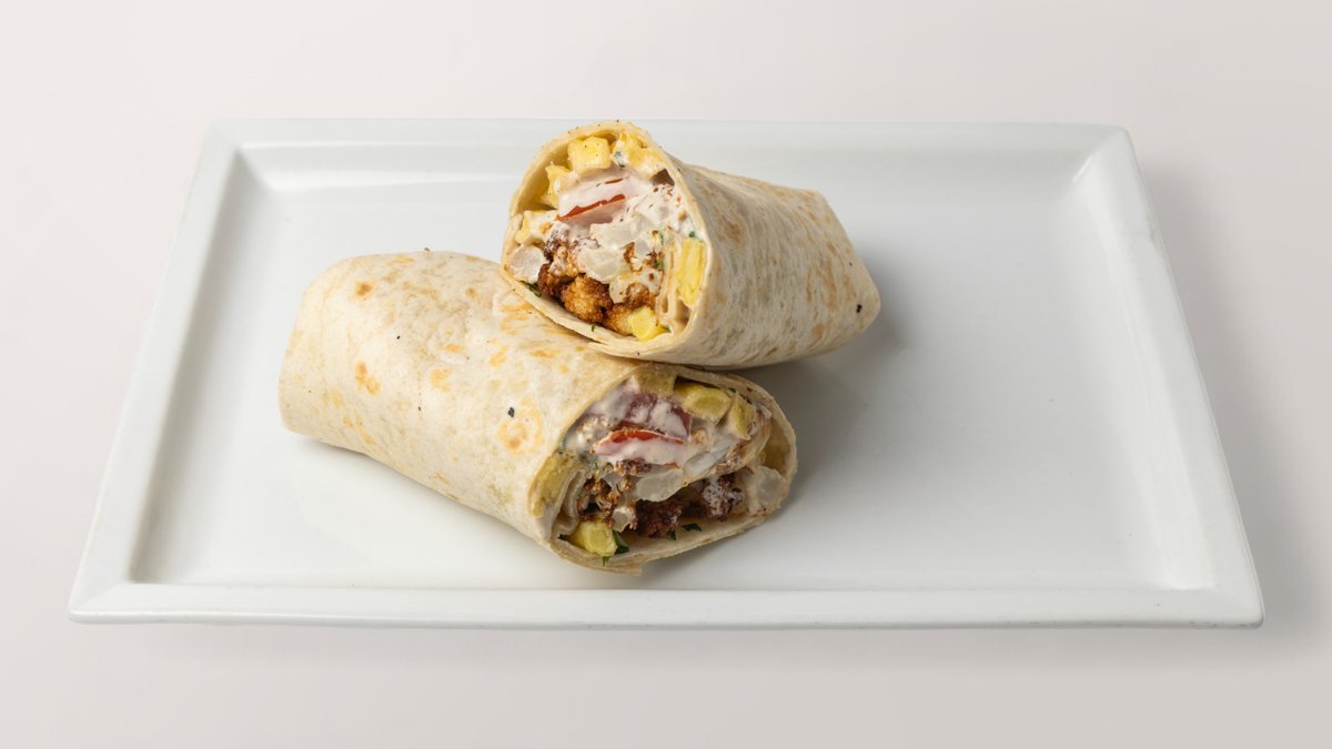 Buttermilk crispy chicken, lettuce, tomato, mayo, lavash bread