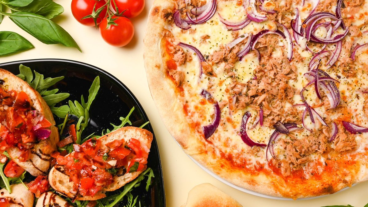 All pizzas are prepared with cheese and tomato sauce. Pictures are symbolic