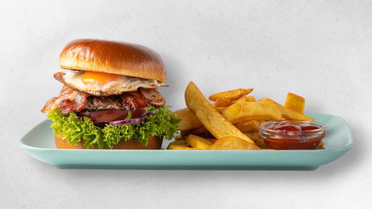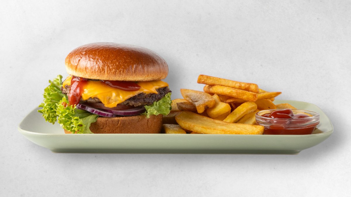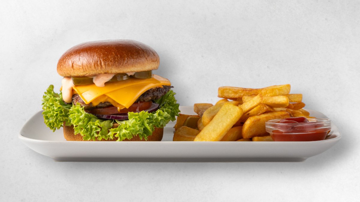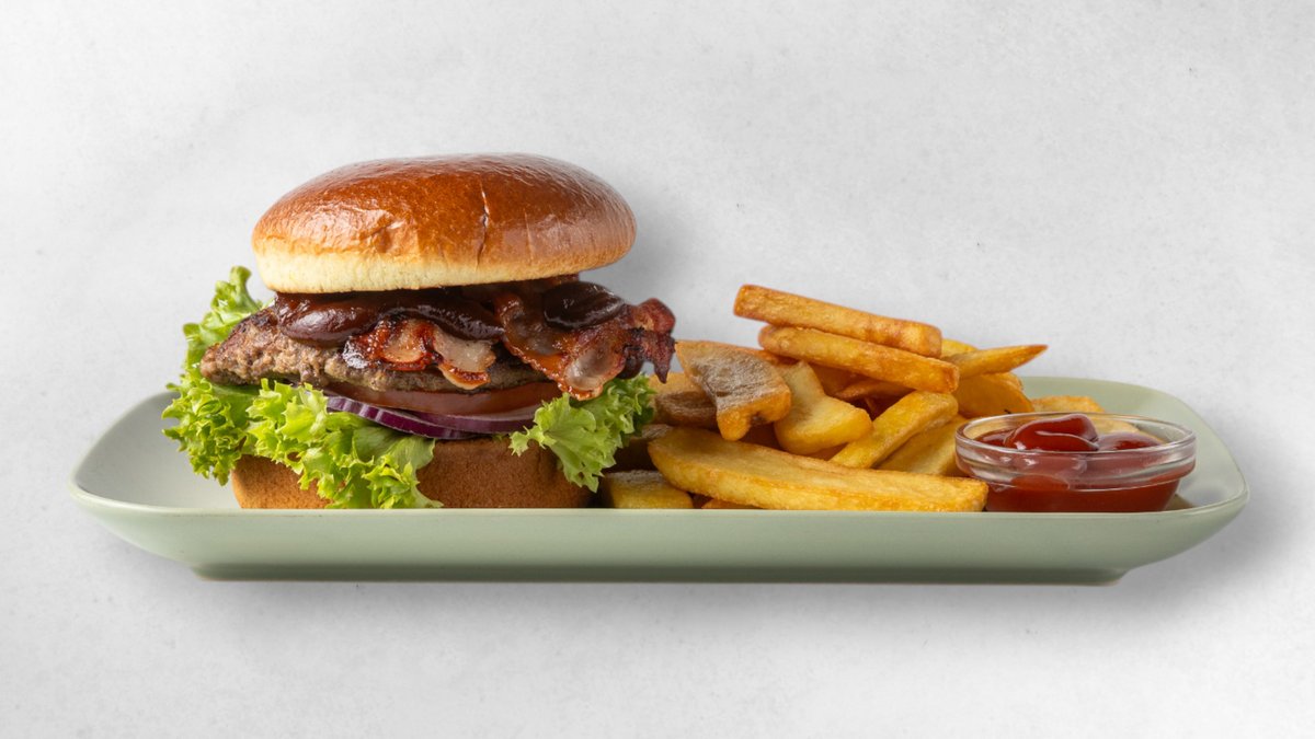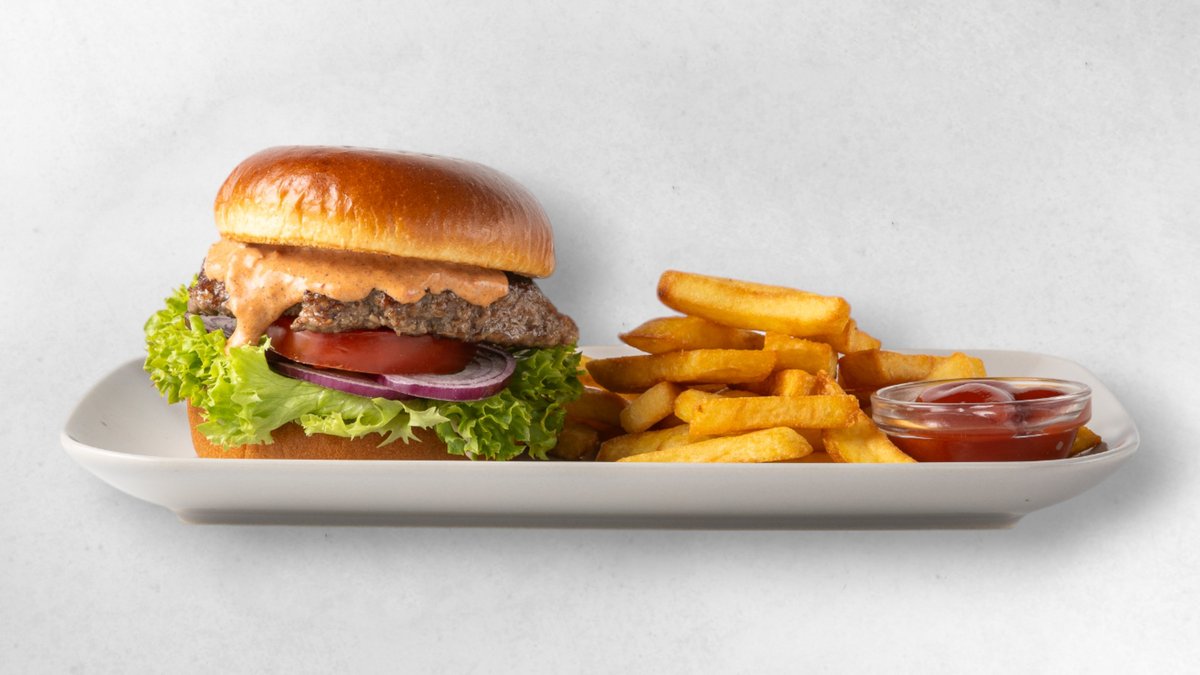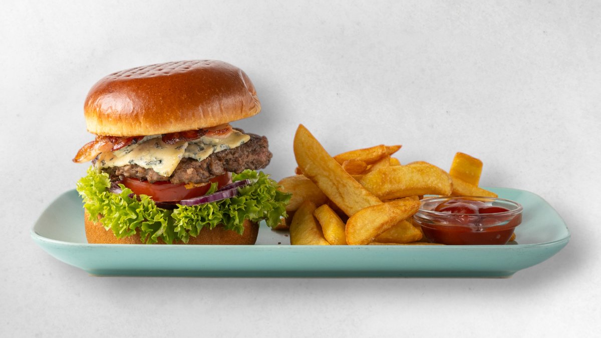 Alle Burger im Brioche-Bun mit Salat, Tomate, Zwiebel und Essiggurkerl dazu Steakhouse Fries und Ketchup. Bei jedem Burger hast Du die die Wahl zwischen Rind, Veggie und Huhn.